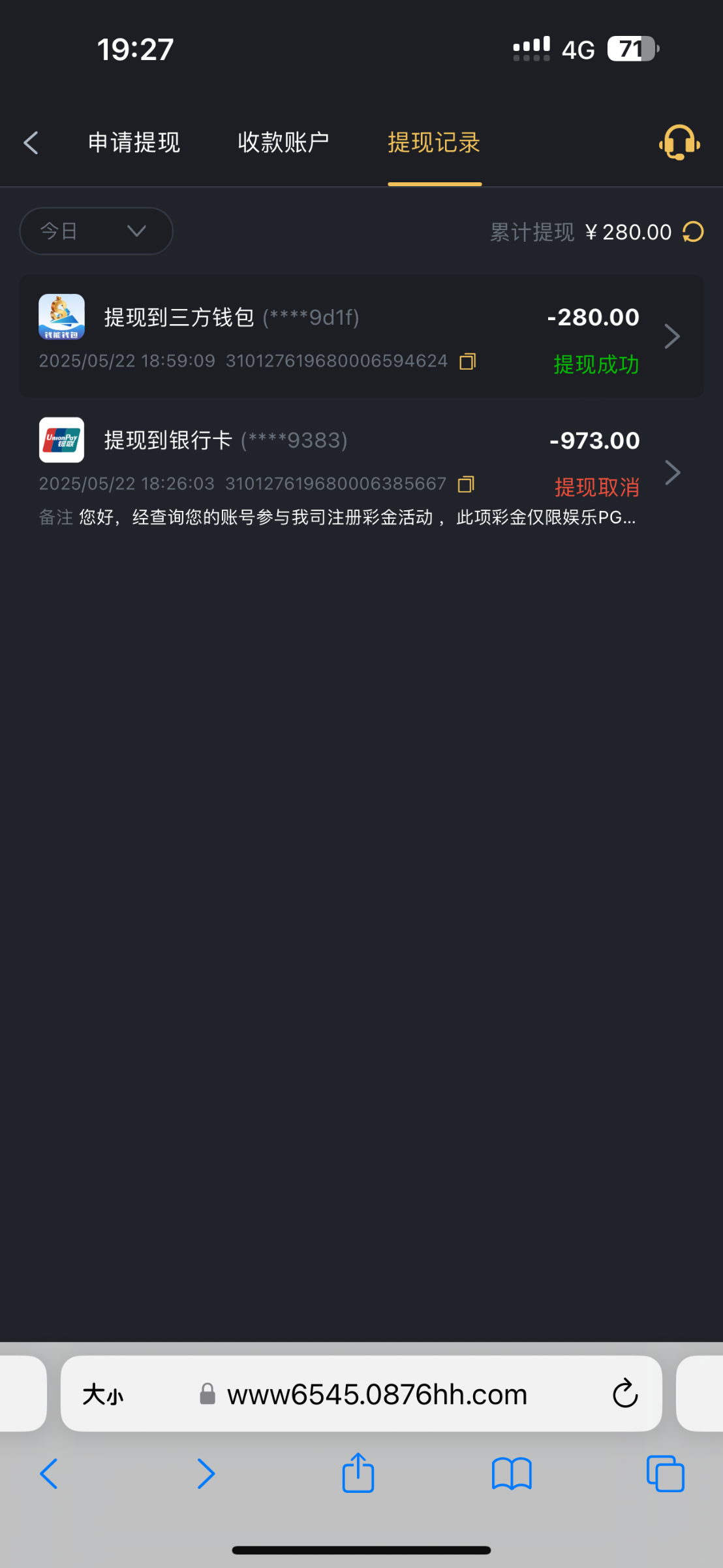 出款情况:自测(禁止充值)