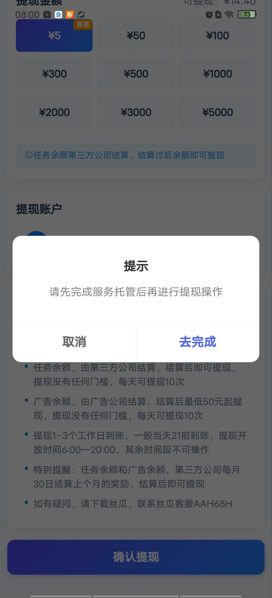 已测,感觉白打工,提现不了,搁那提醒说每个月30结算上个月的,意思就是这个月的余额全部要下个月才能提现,