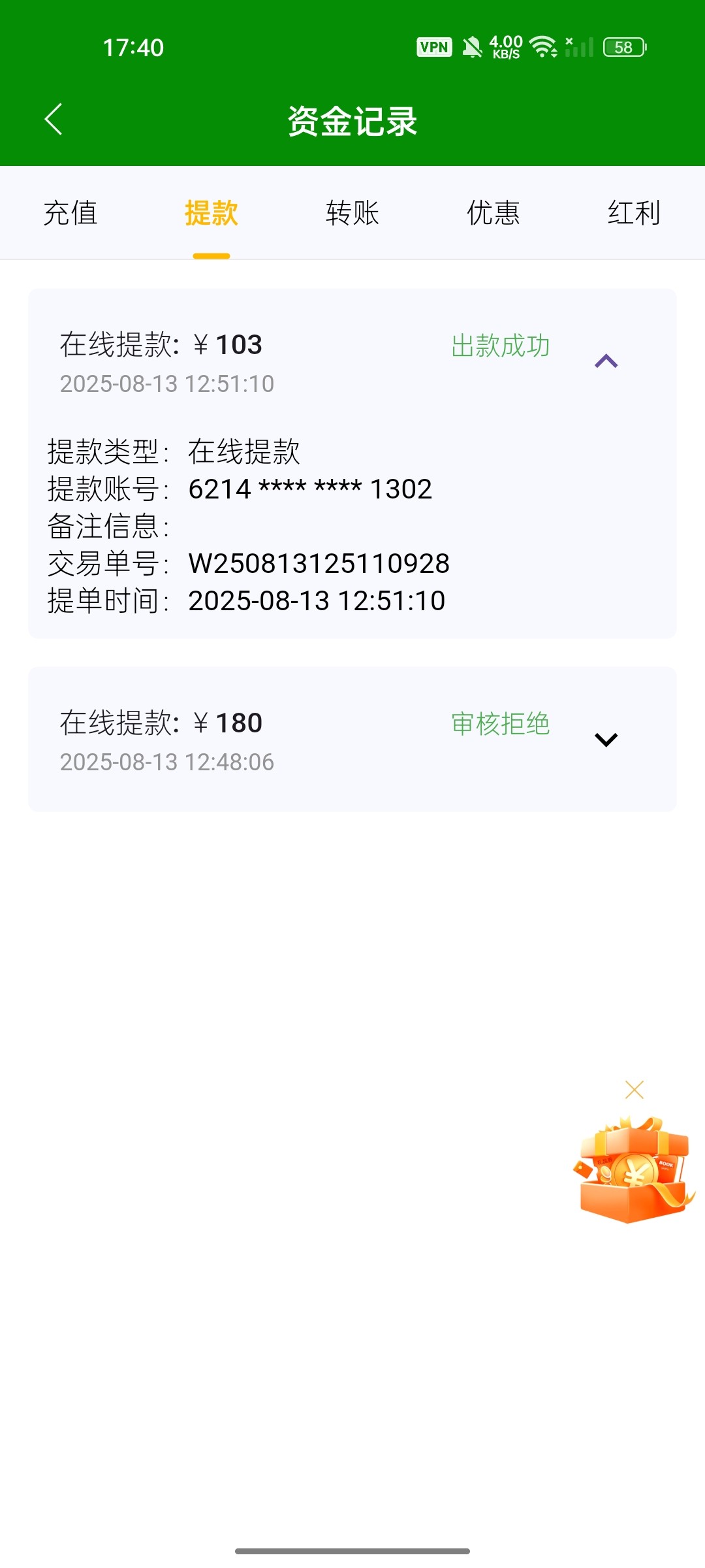 不是要充值等额吗