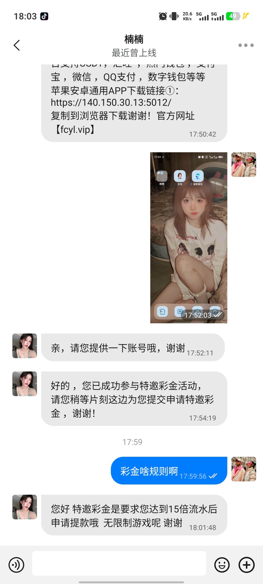 刚接到的电话 送我58 还要充值100才能游戏