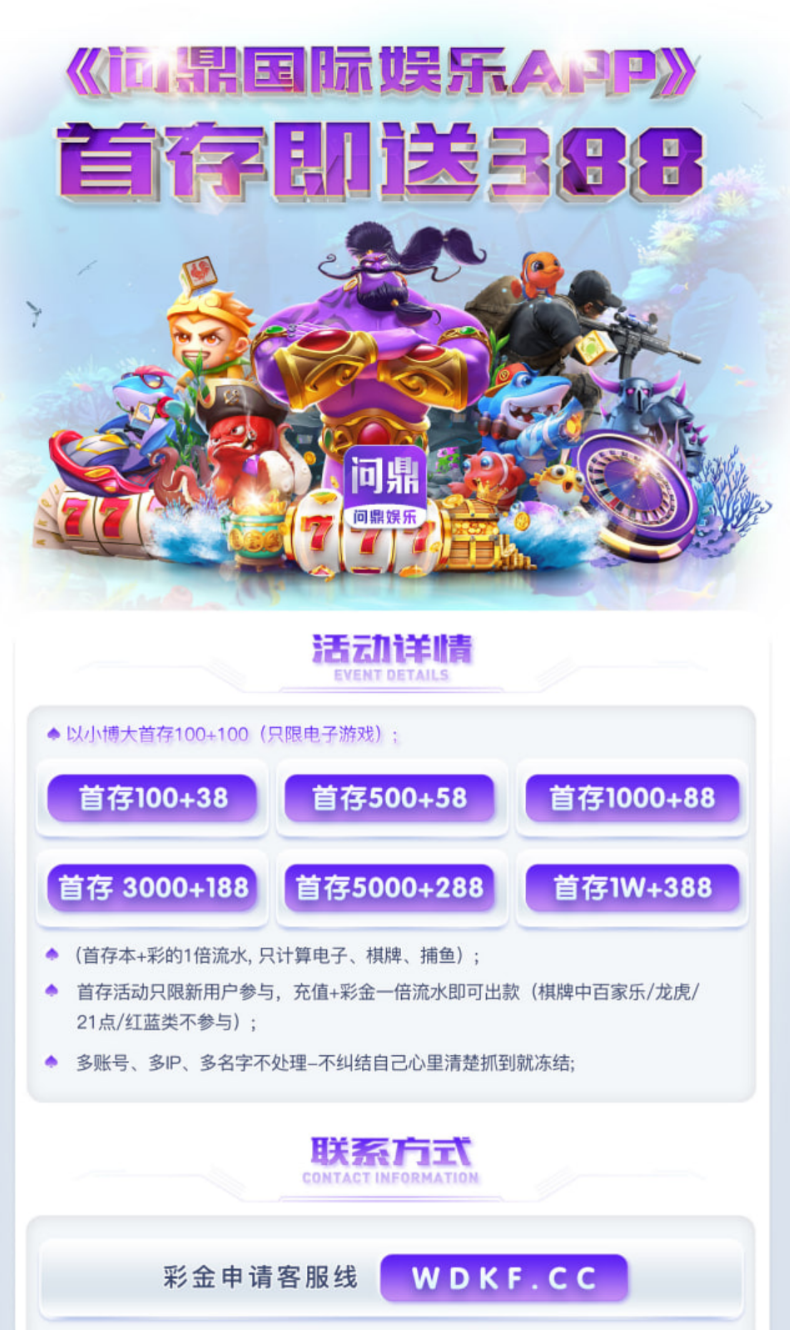 首存100+38、 首存500+58 首存1000+88、 首存3000+188、 首存5000+288 首存活动只限新用户参与,充值+彩金一倍流水即可出款 (首存本+彩的1倍流水;只计算电子、棋牌、捕鱼)官方链接点击进入