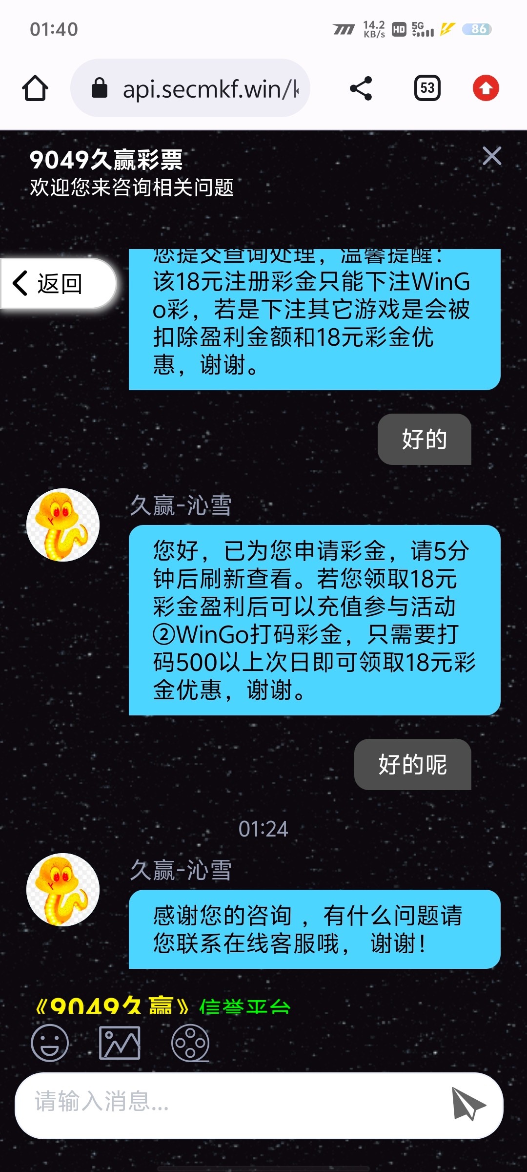 这几个台注册就送18 打上100就能提了 我四个都没有打出来我也是服了