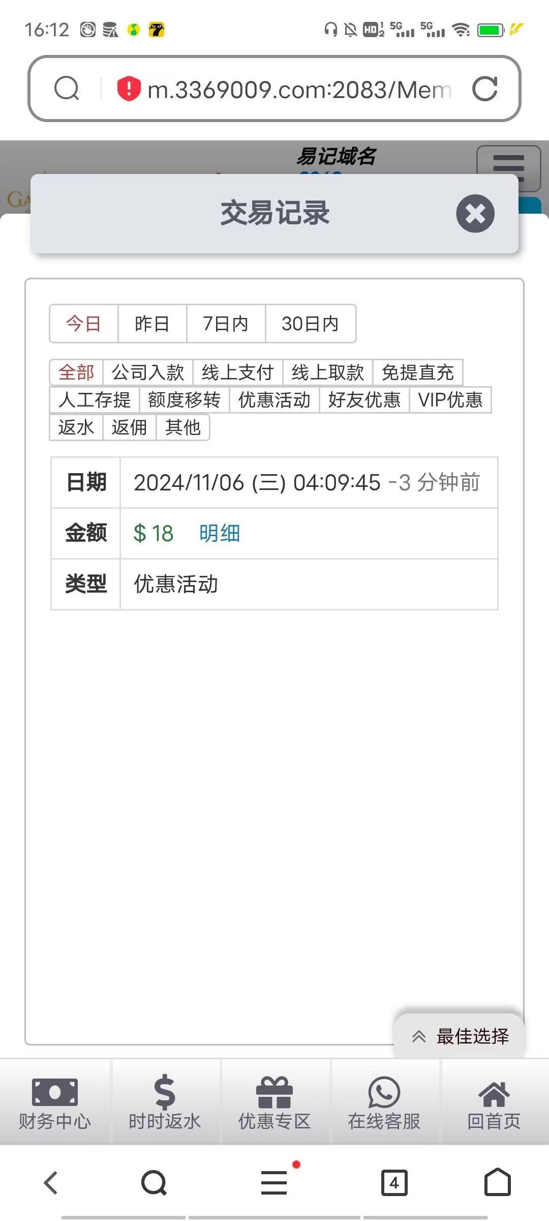 这台子 之前黑我900 审核一年没给我解冻 最开始送了188 打上三百 提现必须充值三百 结果充值打上九百 直接说我频繁更换IP黑我