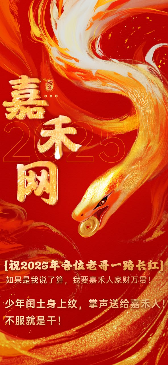 回望2024一整年,有你们的陪伴,嘉禾网茁壮成长,什么都不要说了!还是那句话:如果是我说了算,我要嘉禾人家财万贯!2025年各位老哥一路长红,抽58份猪脚饭,希望每位老哥都能蛇年红红火火!